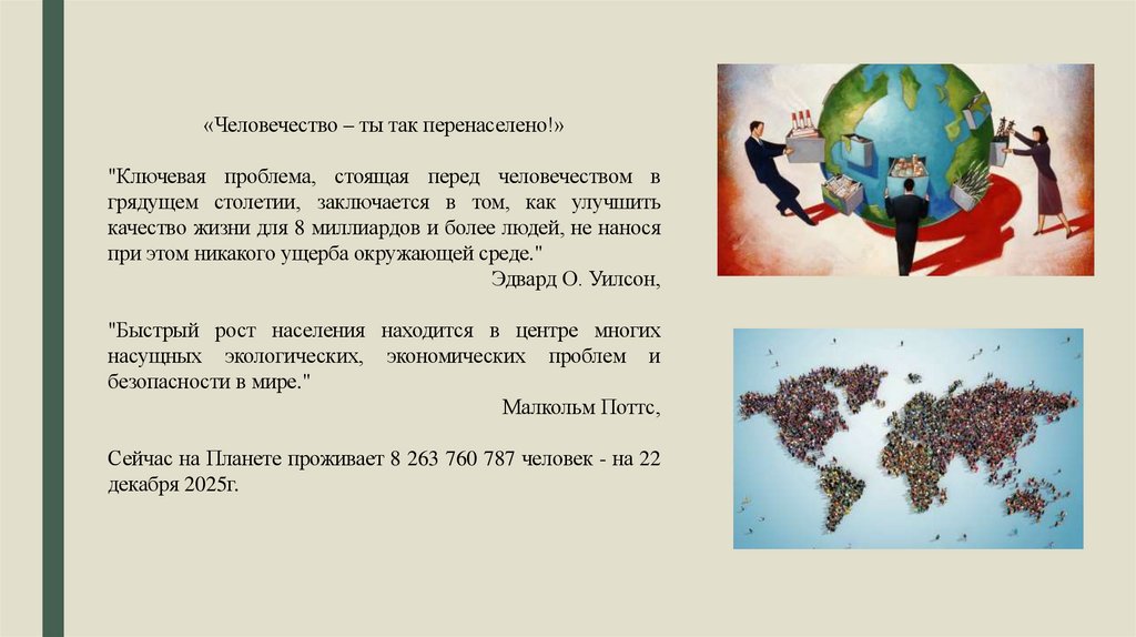 «Человечество – ты так перенаселено!»"Ключевая проблема, стоящая перед человечеством в