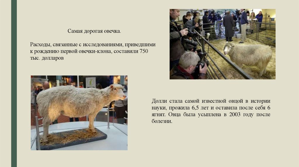Самая дорогая овечка.Расходы, связанные с исследованиями, приведшими