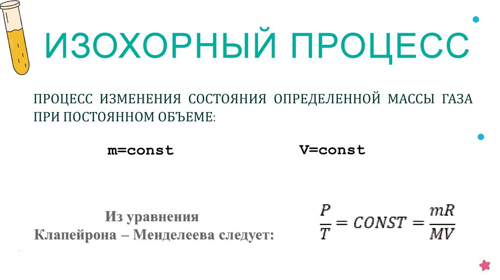 ИЗОХОРНЫЙ ПРОЦЕССПРОЦЕСС ИЗМЕНЕНИЯ СОСТОЯНИЯ ОПРЕДЕЛЕННОЙ МАССЫ ГАЗА