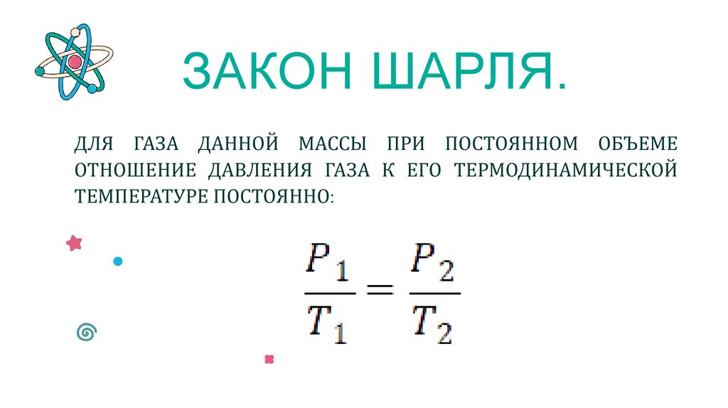 ЗАКОН ШАРЛЯ.ДЛЯ ГАЗА ДАННОЙ МАССЫ ПРИ ПОСТОЯННОМ ОБЪЕМЕ