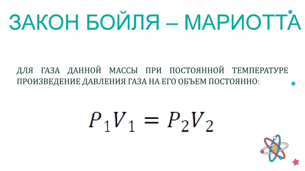 ЗАКОН БОЙЛЯ – МАРИОТТАДЛЯ ГАЗА ДАННОЙ МАССЫ ПРИ ПОСТОЯННОЙ ТЕМПЕРАТУРЕ