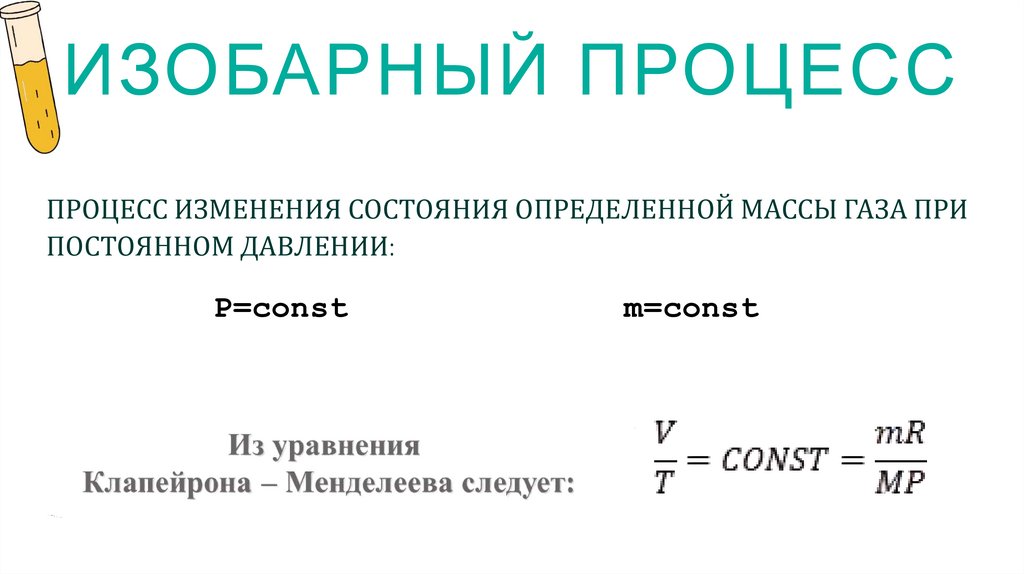 ИЗОБАРНЫЙ ПРОЦЕССПРОЦЕСС ИЗМЕНЕНИЯ СОСТОЯНИЯ ОПРЕДЕЛЕННОЙ МАССЫ ГАЗА ПРИ