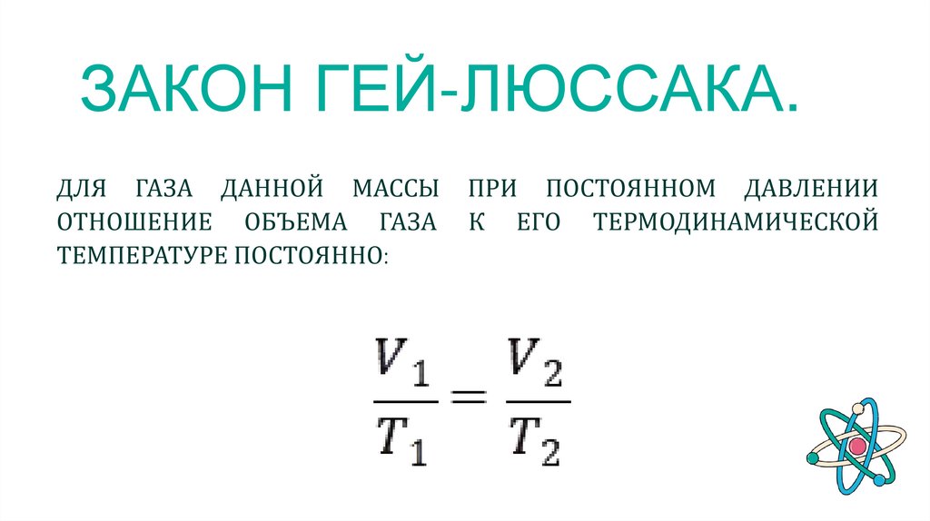 ЗАКОН ГЕЙ-ЛЮССАКА.ДЛЯ ГАЗА ДАННОЙ МАССЫ