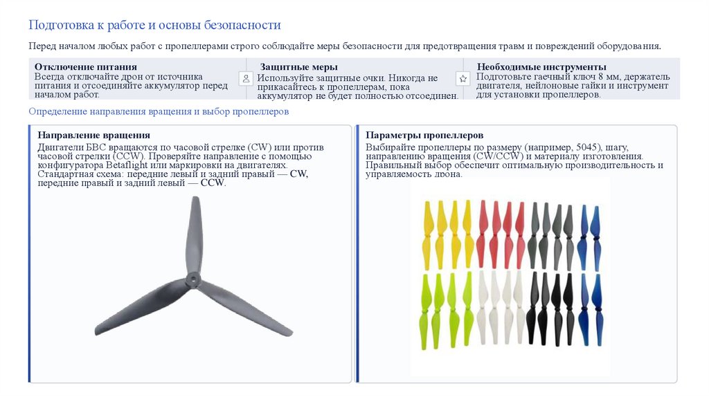 • Неподходящие размеры: Выбирайте пропеллеры, рекомендованные
