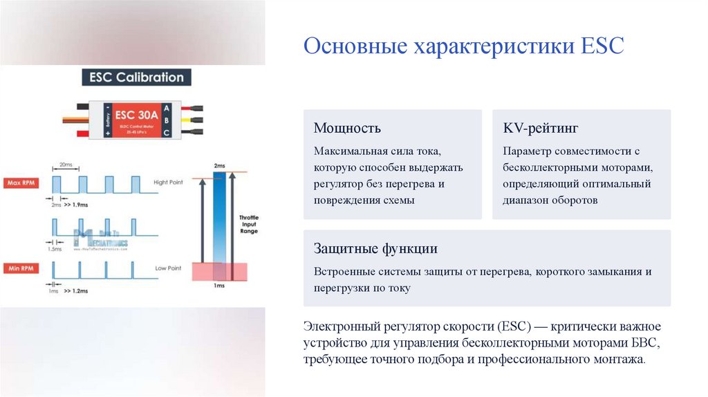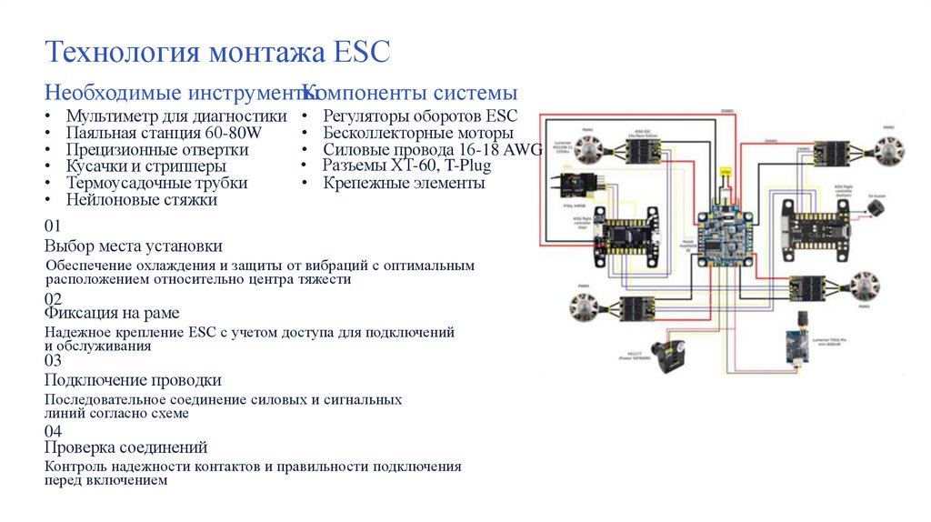 Электронные регуляторы скорости (ESC) преобразуют сигналы от контроллера полета в трехфазное питание для