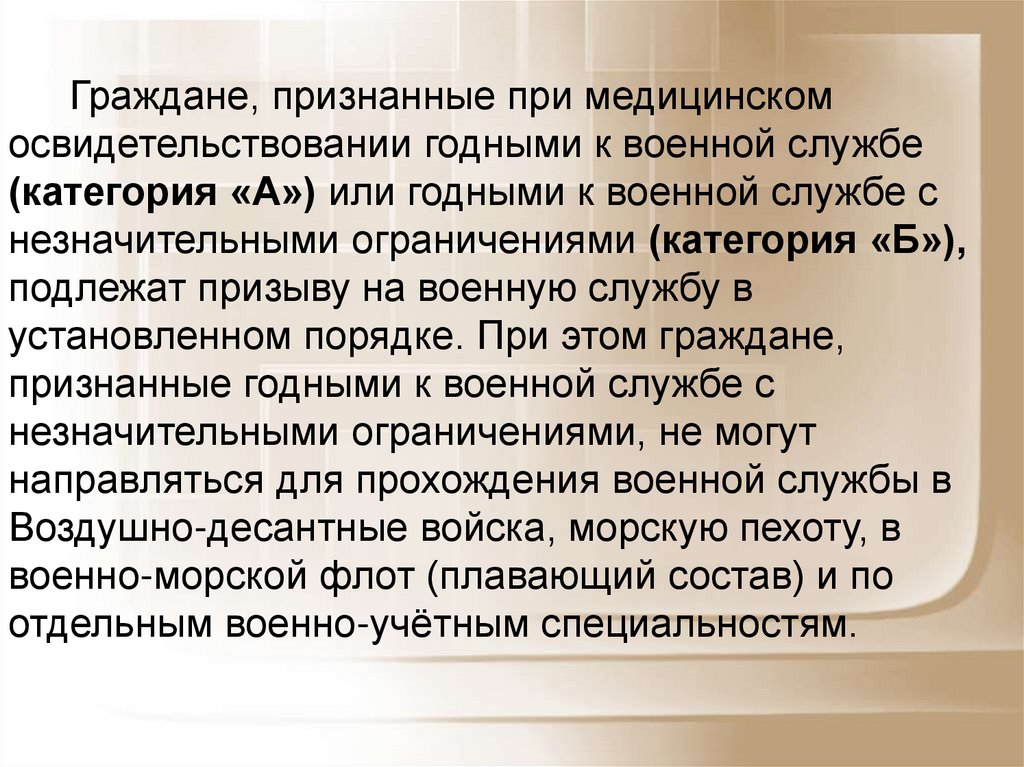 Граждане, признанные при медицинскомосвидетельствовании годными к военной службе