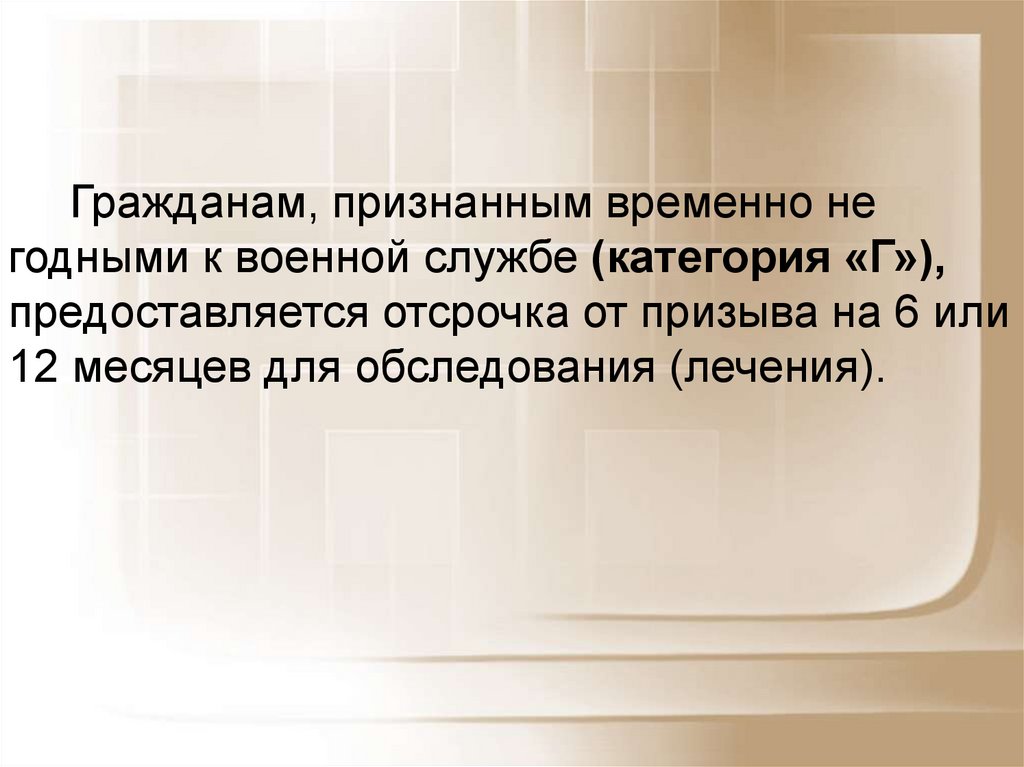 Гражданам, признанным временно негодными к военной службе (категория «Г»),