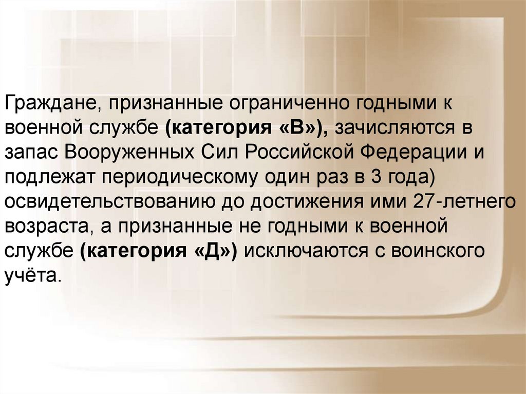 Граждане, признанные ограниченно годными квоенной службе (категория «В»), зачисляются в