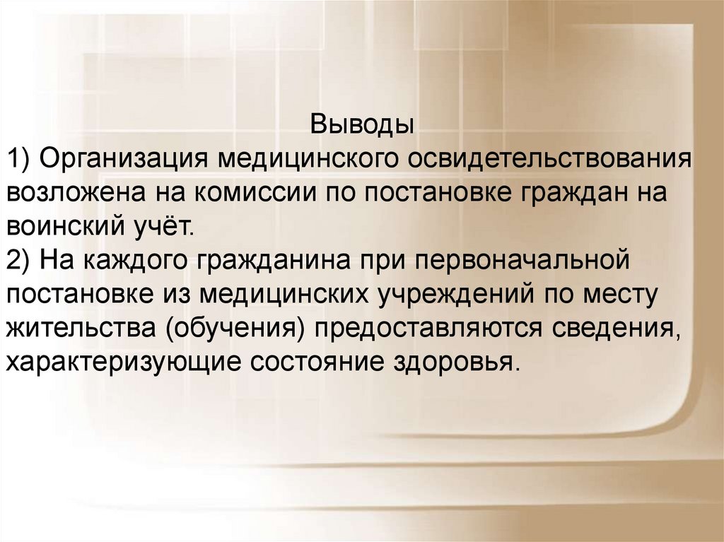 Выводы1) Организация медицинского освидетельствования