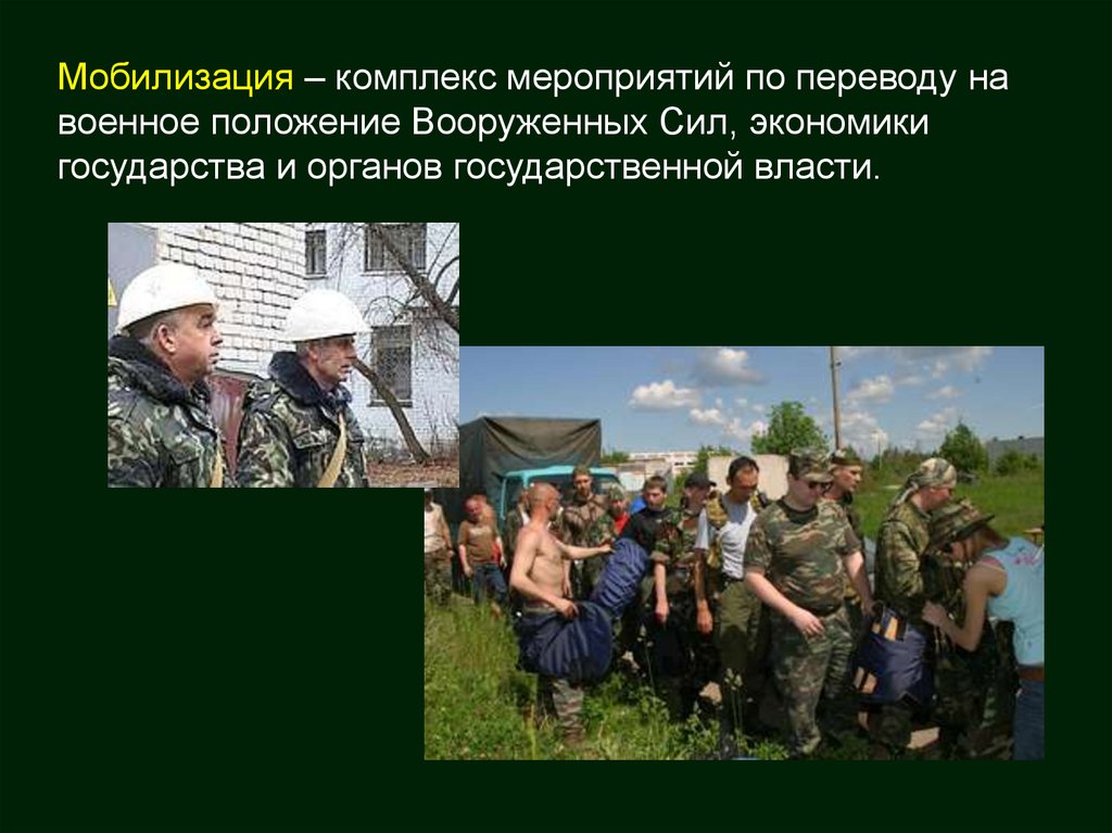 Мобилизация – комплекс мероприятий по переводу навоенное положение Вооруженных Сил, экономики