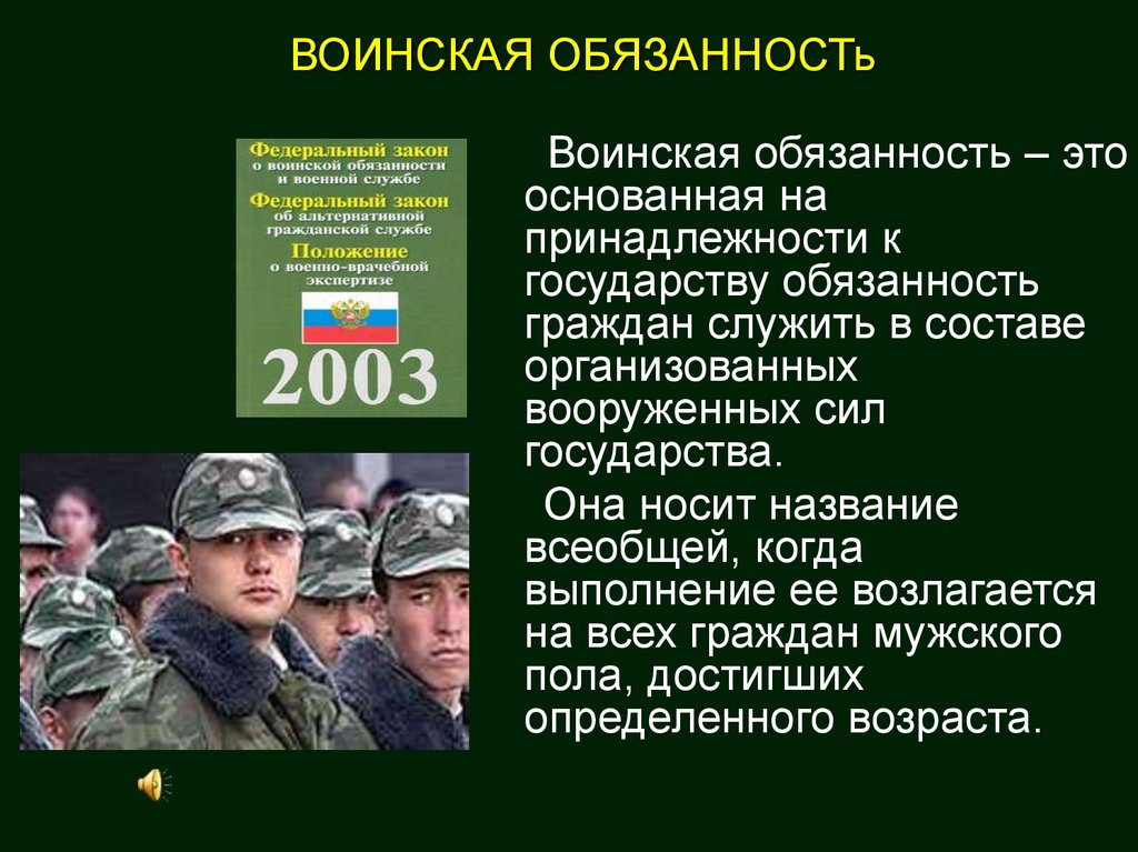 ВОИНСКАЯ ОБЯЗАННОСТьВоинская обязанность – это