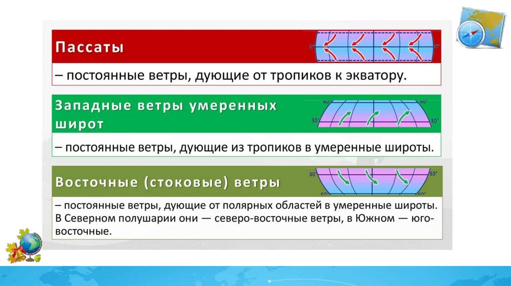 На разных широтах АД различается:- давление в экваториальных широтах – низкое;