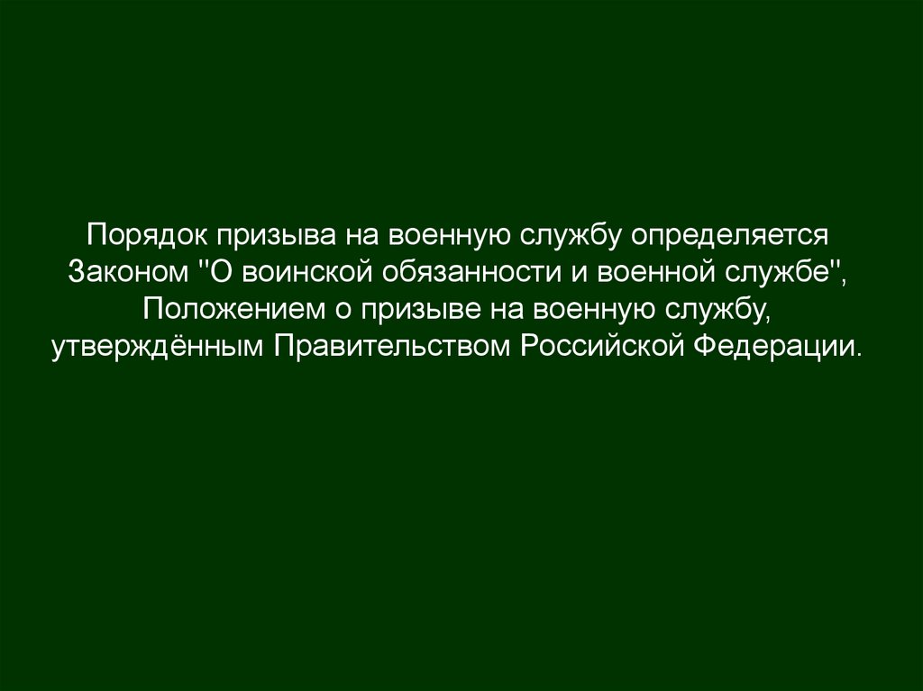 Порядок призыва на военную службу определяетсяЗаконом "О воинской обязанности и военной службе",