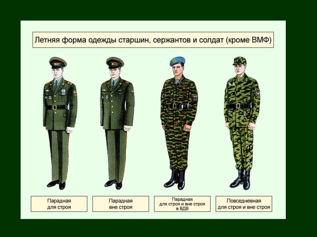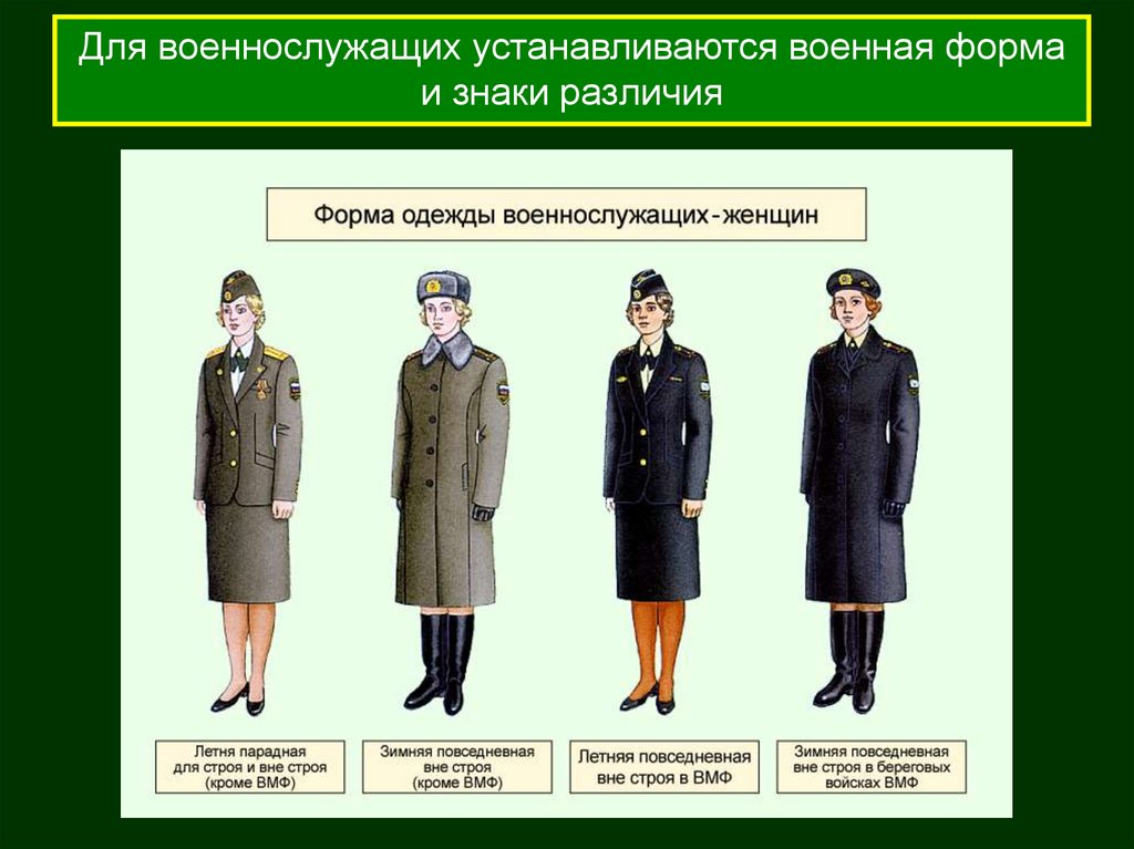 Для военнослужащих устанавливаются военная формаи знаки различия