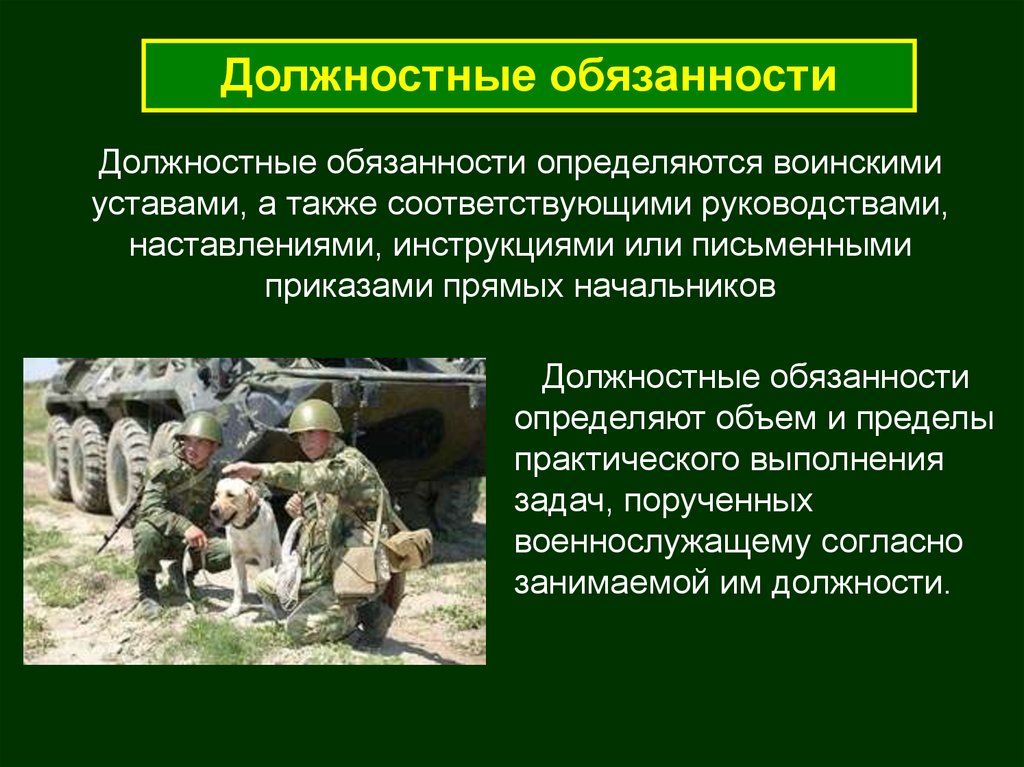 Должностные обязанностиДолжностные обязанности определяются воинскими