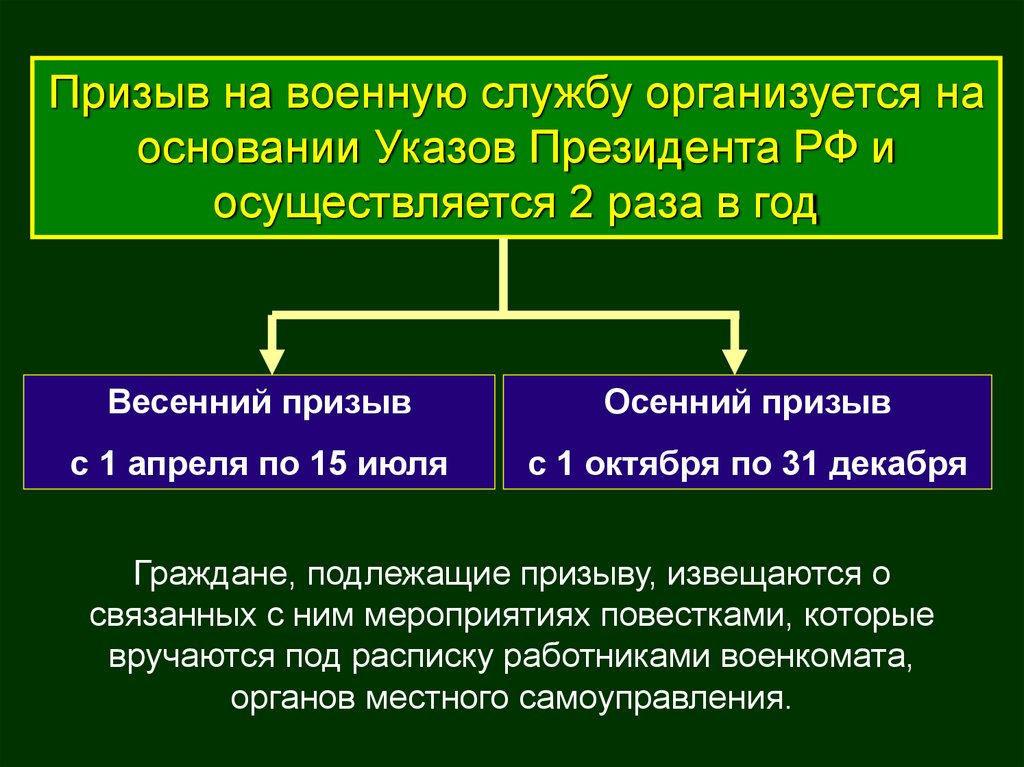 Призыв на военную службу организуется наосновании Указов Президента РФ и