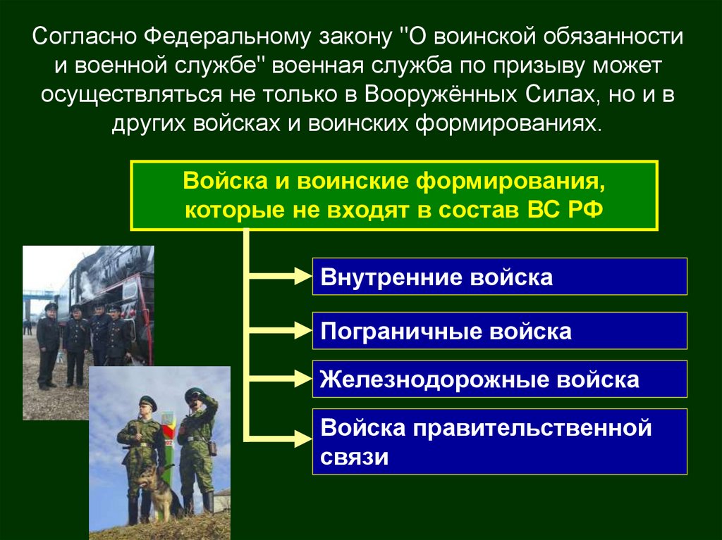 Согласно Федеральному закону "О воинской обязанностии военной службе" военная служба по призыву может