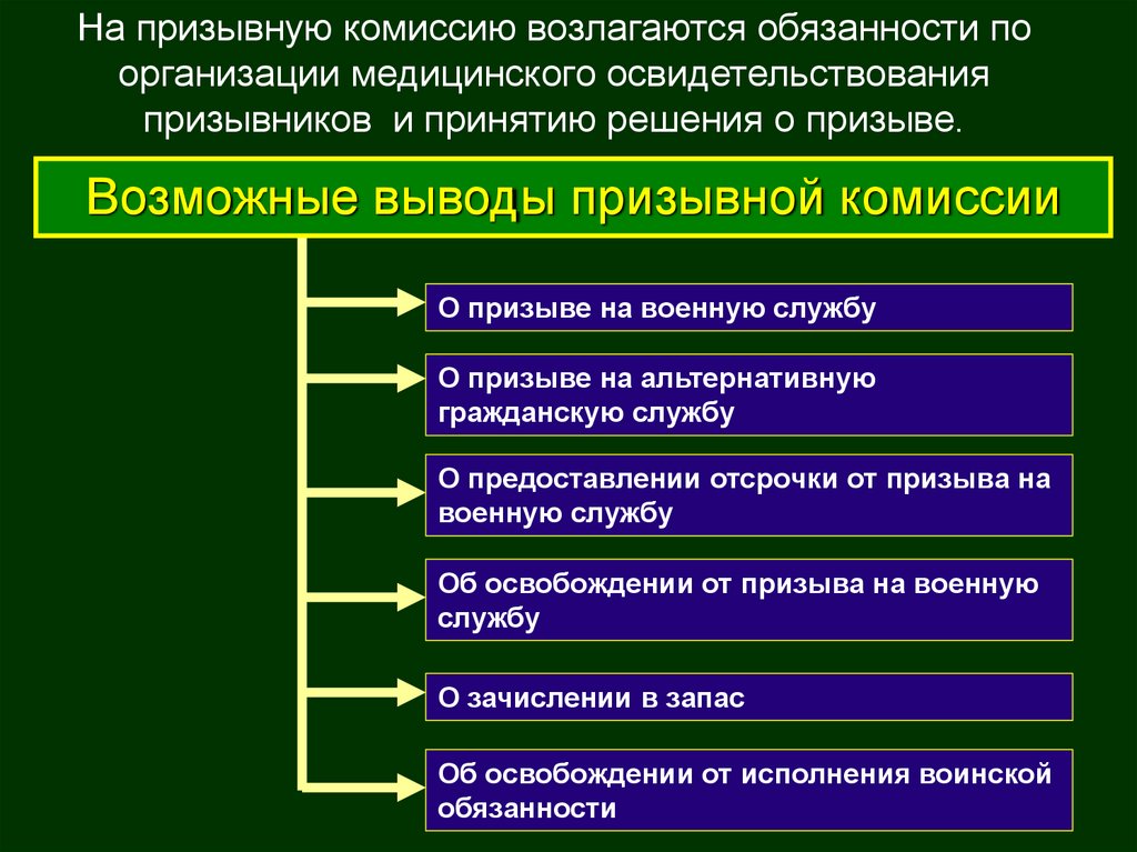 На призывную комиссию возлагаются обязанности поорганизации медицинского освидетельствования