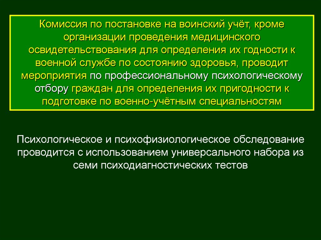 Комиссия по постановке на воинский учёт, кромеорганизации проведения медицинского