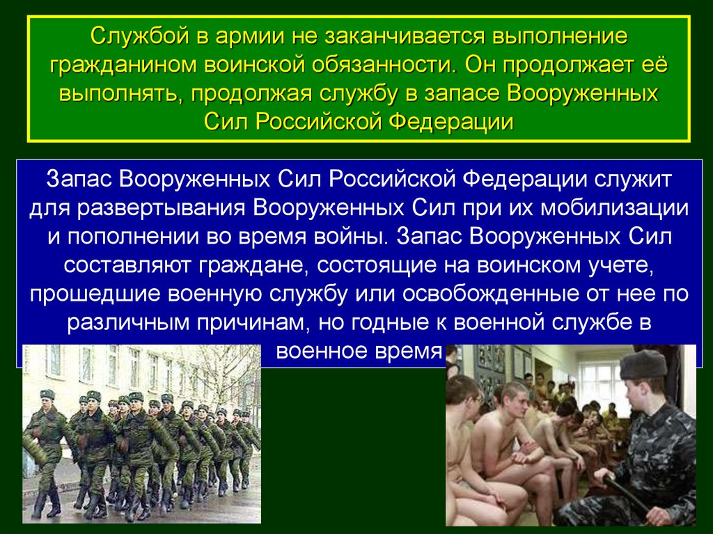 и пополнении во время войны. Запас Вооруженных Сил
