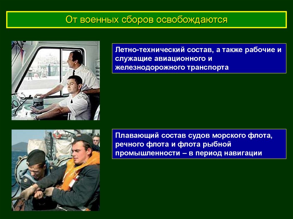 От военных сборов освобождаютсяЛетно-технический состав, а также рабочие и