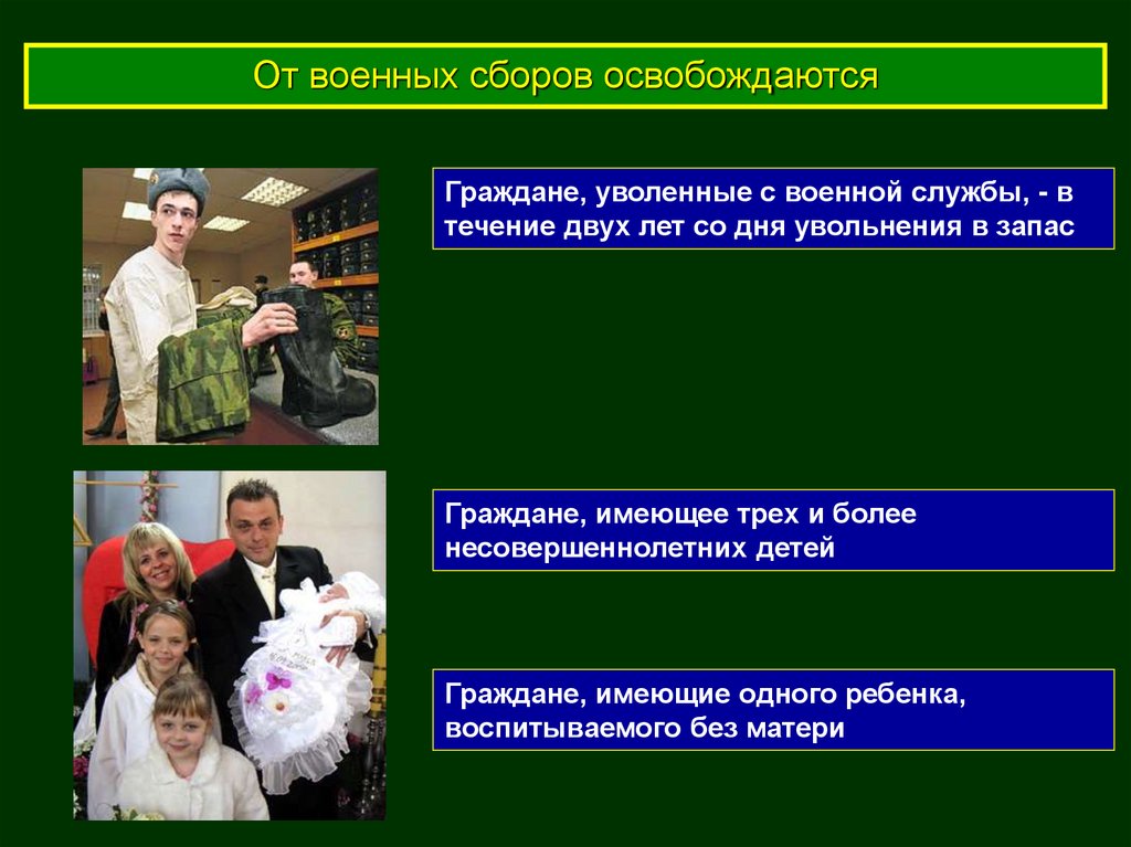 От военных сборов освобождаютсяГраждане, уволенные с военной службы, - в