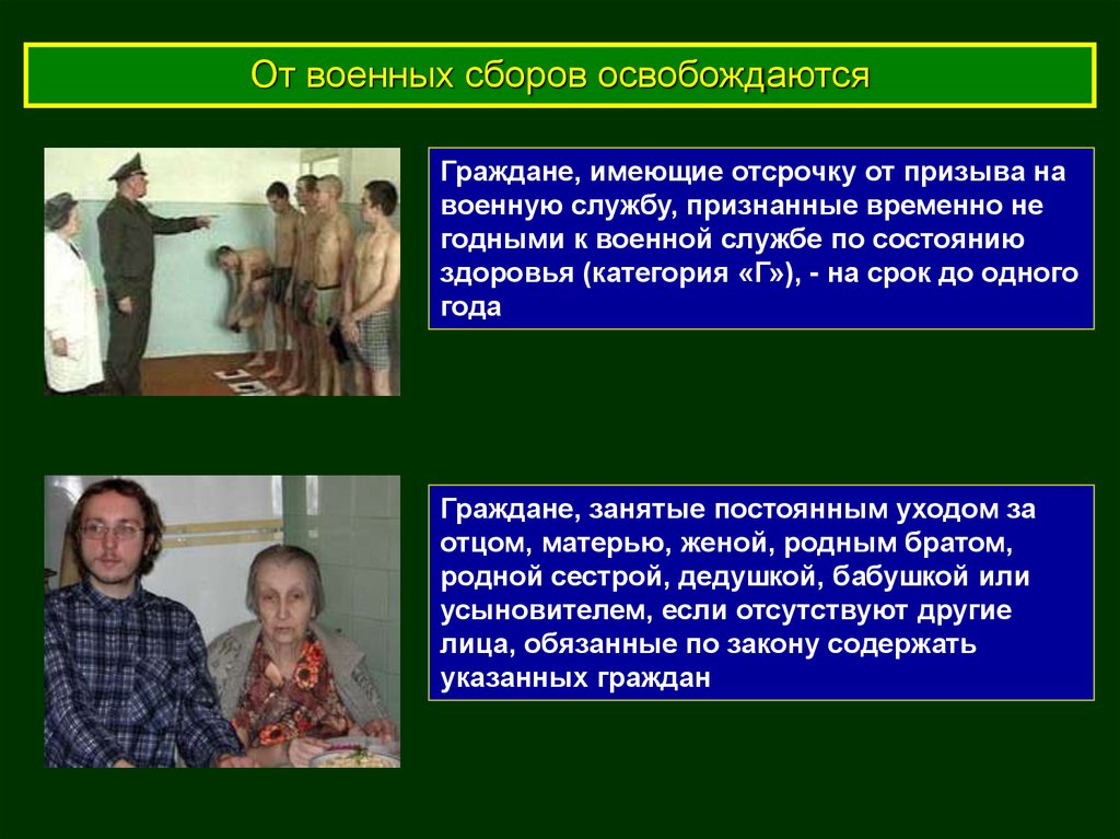 От военных сборов освобождаютсяГраждане, имеющие отсрочку от призыва на