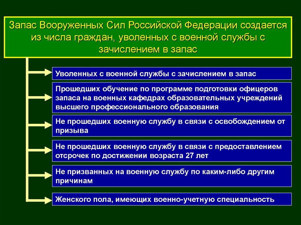 Запас Вооруженных Сил Российской Федерации создаетсяиз числа граждан, уволенных с военной службы с