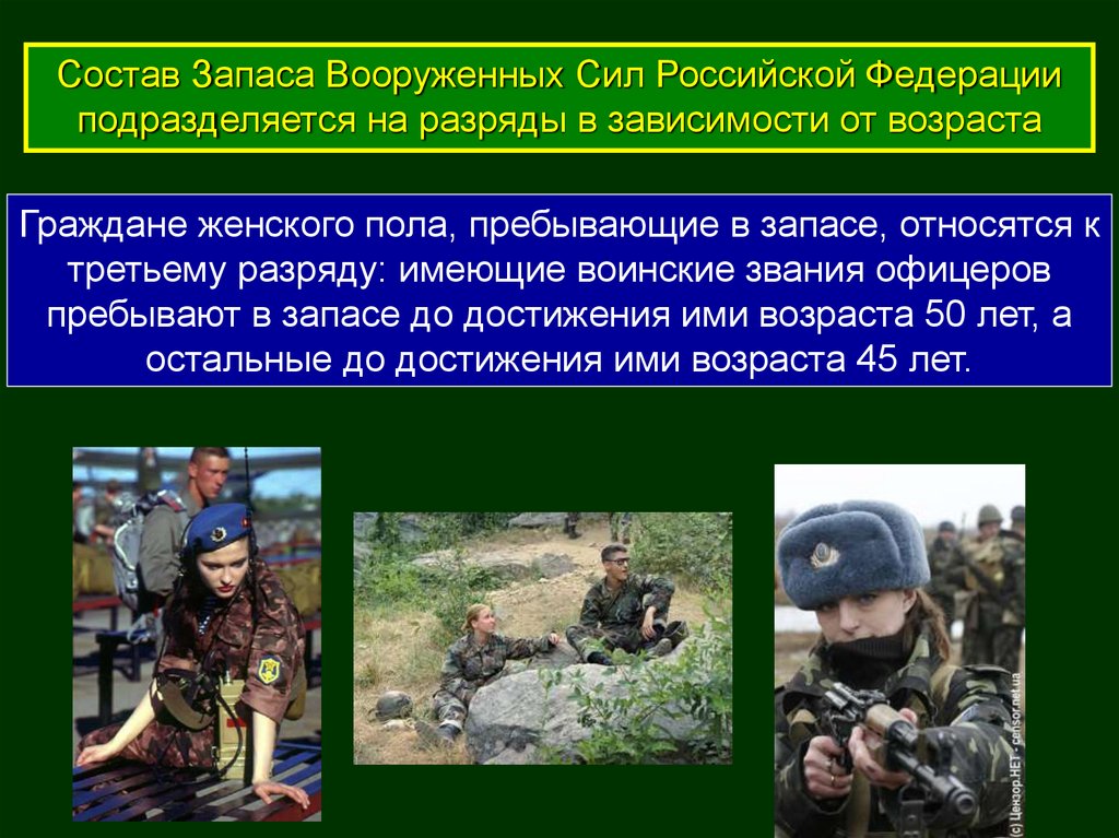 Граждане женского пола, пребывающие в запасе, относятся к