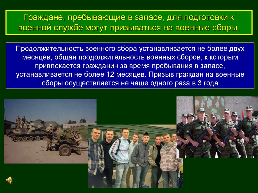 Граждане, пребывающие в запасе, для подготовки квоенной службе могут призываться на военные сборы.