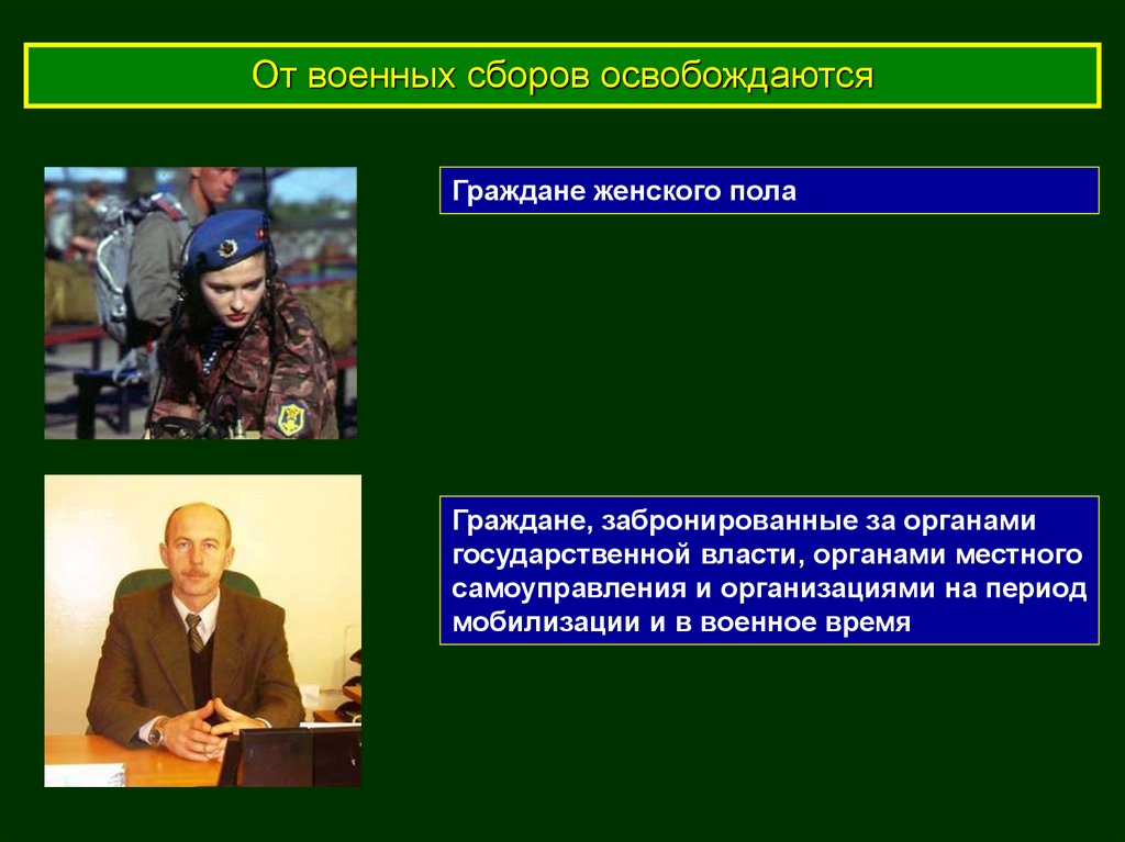 От военных сборов освобождаютсяГраждане женского пола
