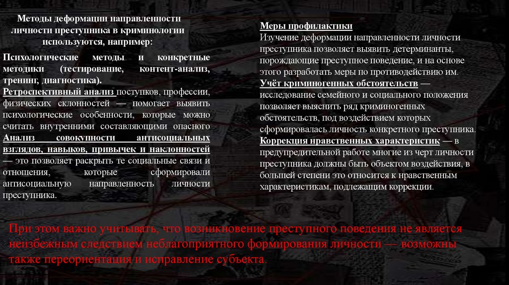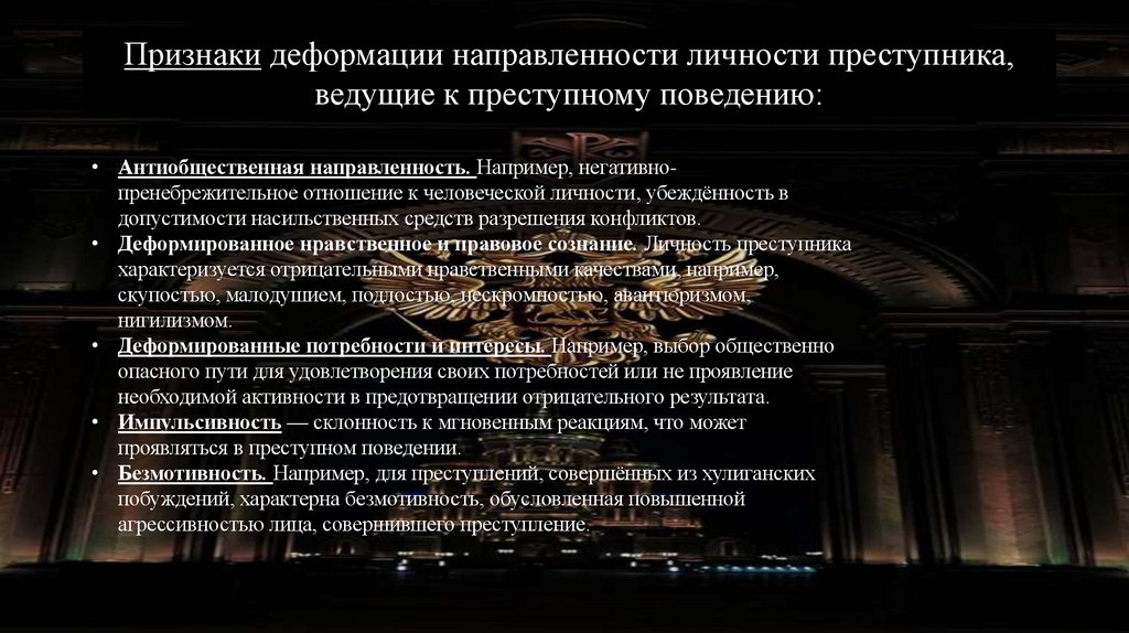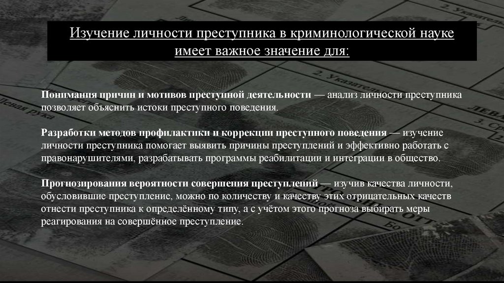 и качеств человека, являющихся причинами и условиями совершения преступлений.