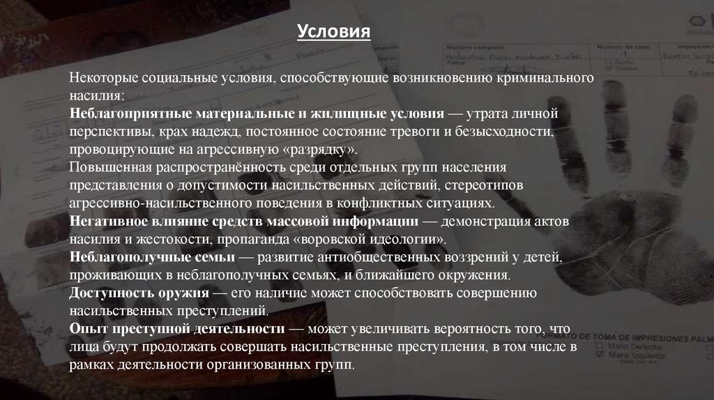УсловияНекоторые социальные условия, способствующие возникновению криминального