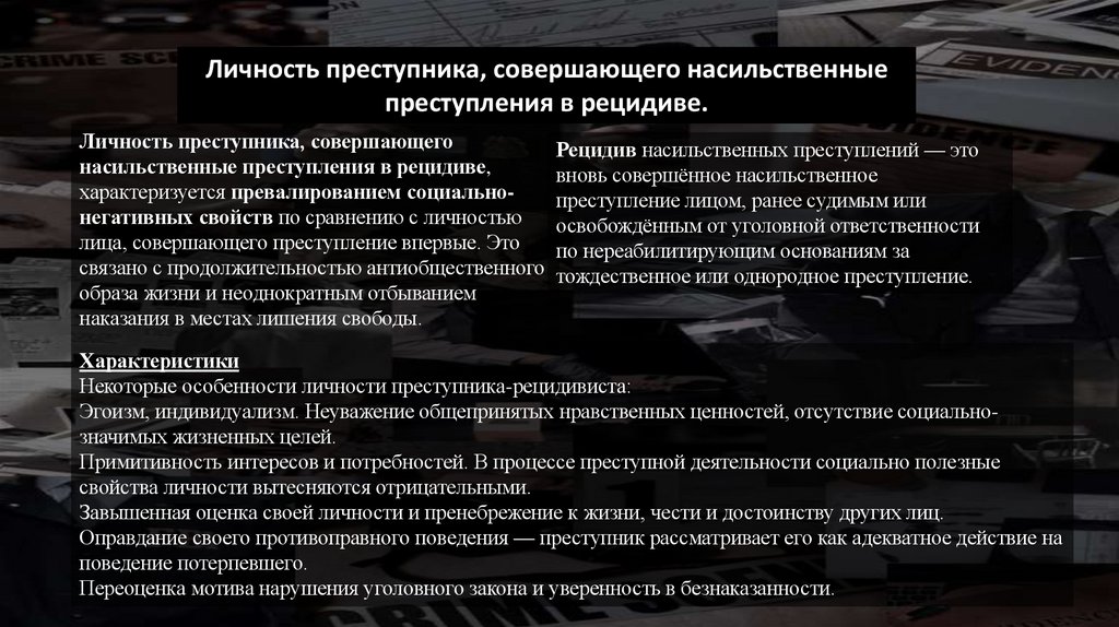 Личность преступника, совершающего насильственныепреступления в рецидиве.