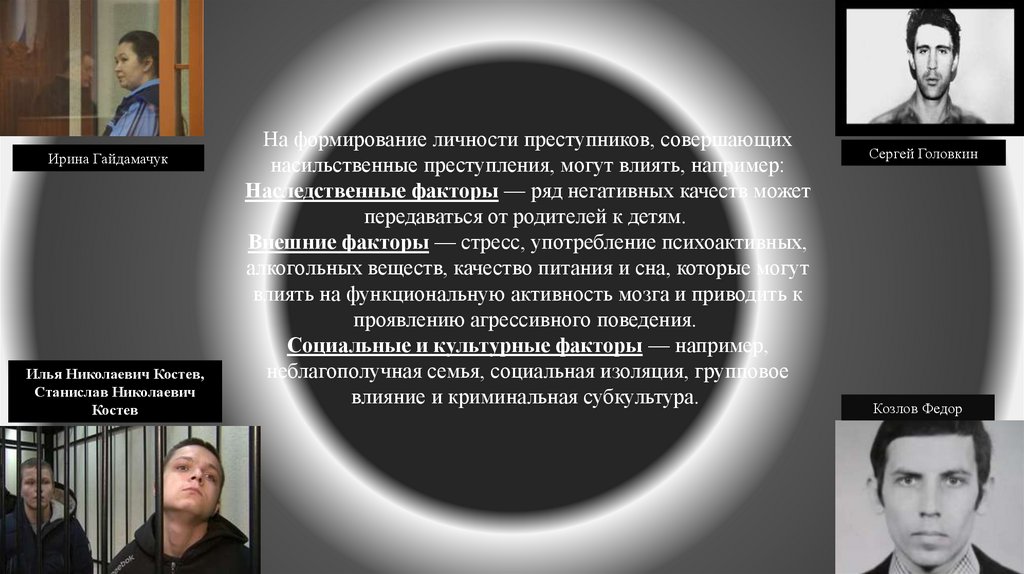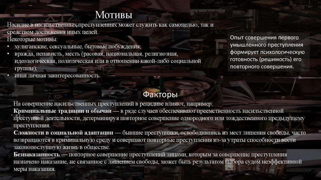 На совершение насильственных преступлений в рецидиве влияют, например: