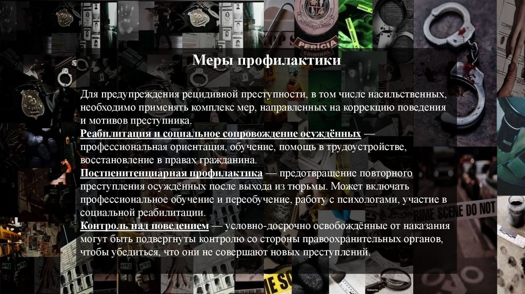 Меры профилактикиДля предупреждения рецидивной преступности, в том числе насильственных,