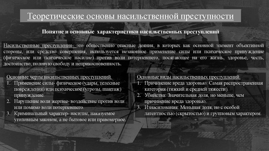 Теоретические основы насильственной преступностиПонятие и основные характеристики насильственных преступлений