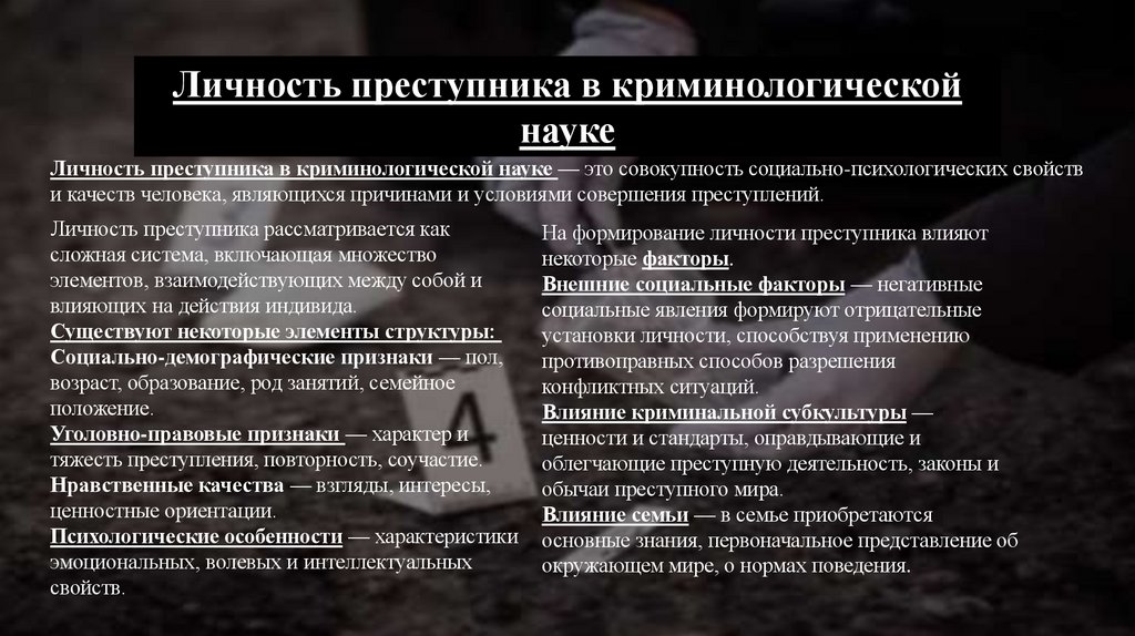 Личность преступника в криминологической науке — это совокупность социально-психологических свойств