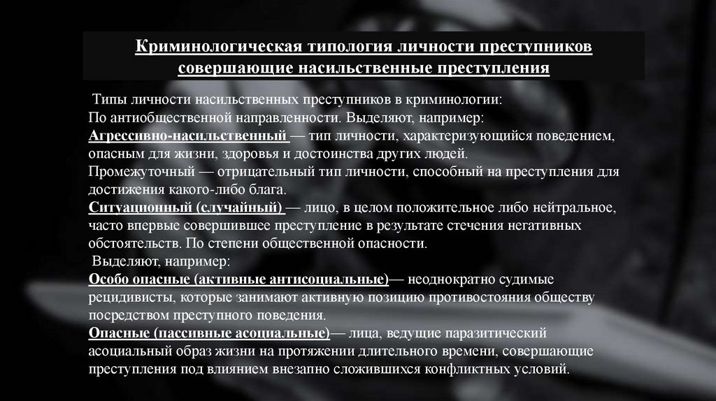 Факторы определяющие актуальность:Общественная опасность насильственных преступлений