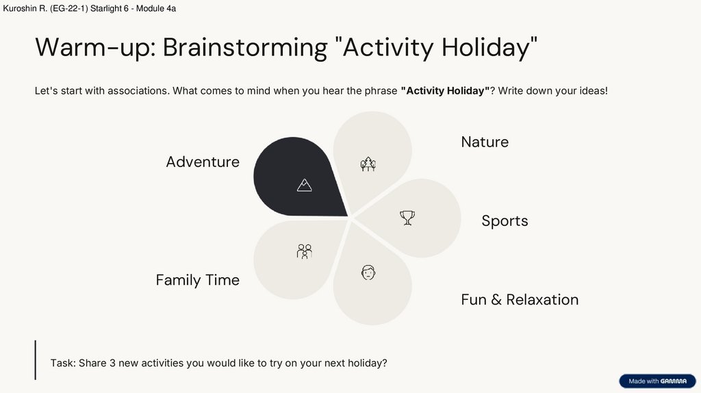 Kuroshin R. (EG-22-1) Starlight 6 - Module 4aWarm-up: Brainstorming "Activity Holiday"