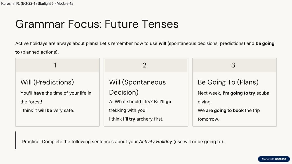Kuroshin R. (EG-22-1) Starlight 6 - Module 4aGrammar Focus: Future Tenses