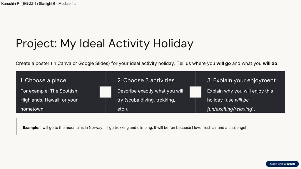 Kuroshin R. (EG-22-1) Starlight 6 - Module 4aProject: My Ideal Activity Holiday