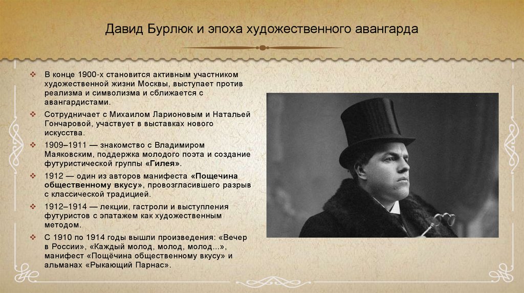 Давид Бурлюк и эпоха художественного авангардаВ конце 1900-х становится активным участником