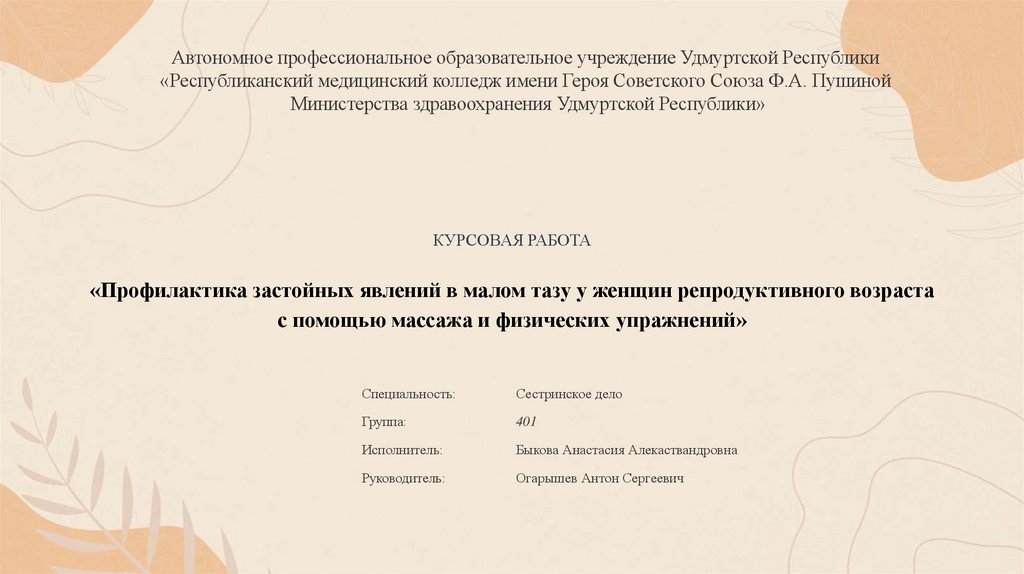 1. КУРСОВАЯ РАБОТА «Профилактика застойных явлений в малом тазу у женщин репродуктивного возраста с помощью массажа и физических