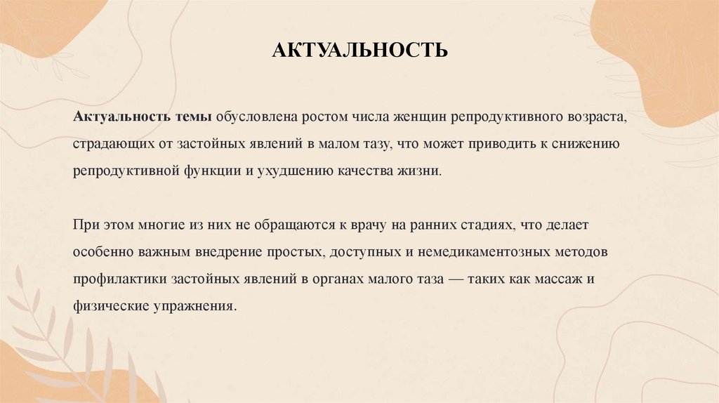 «Профилактика застойных явлений в малом тазу у женщин репродуктивного возраста