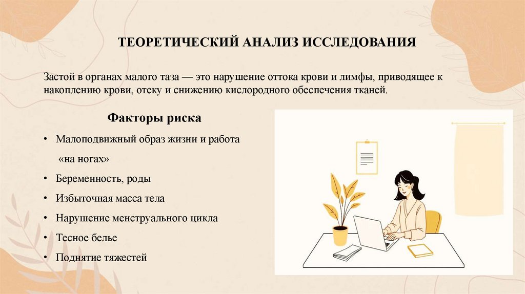 ТЕОРЕТИЧЕСКИЙ АНАЛИЗ ИССЛЕДОВАНИЯЗастой в органах малого таза — это нарушение оттока крови и лимфы, приводящее к