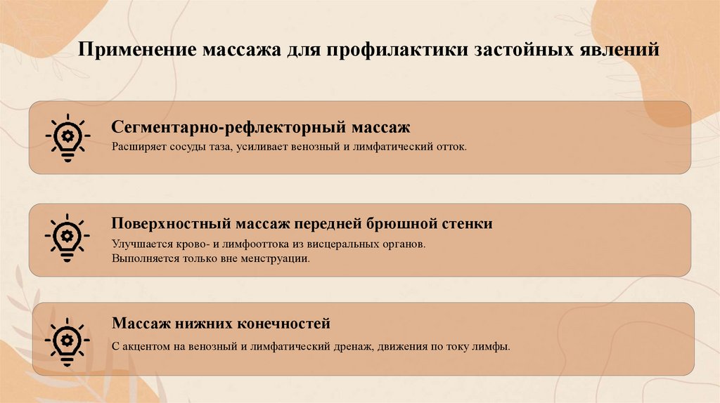 профилактики застойных явлений в органах малого таза — таких как массаж и
