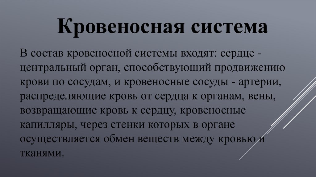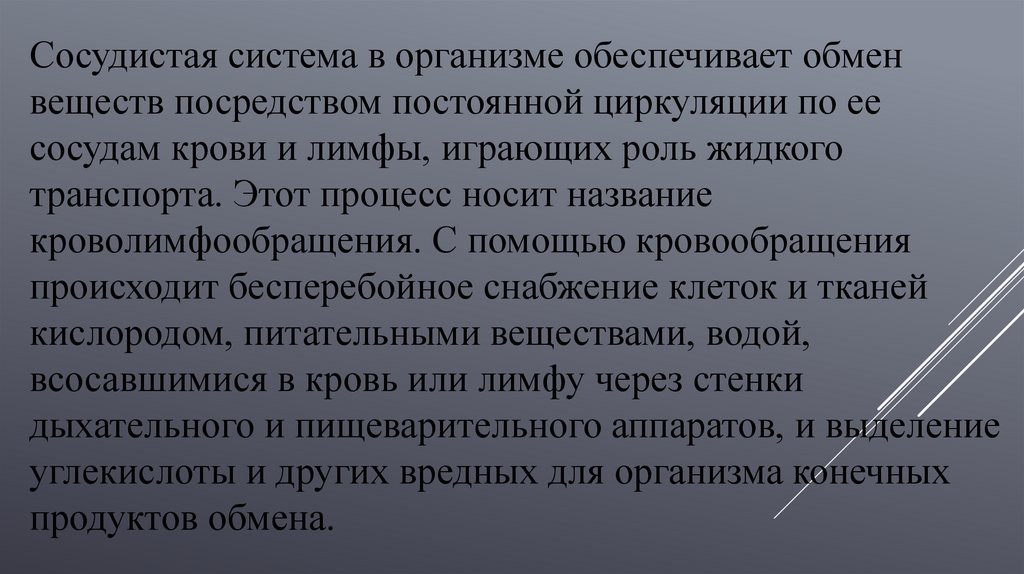 Сосудистая система в организме обеспечивает обменвеществ посредством постоянной циркуляции по ее