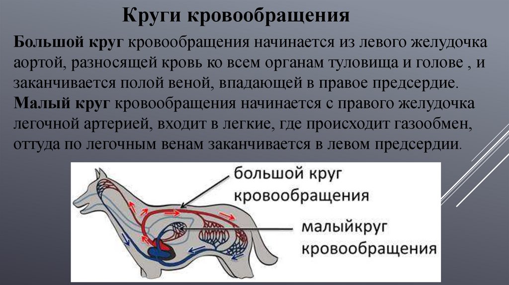 Круги кровообращенияБольшой круг кровообращения начинается из левого желудочка