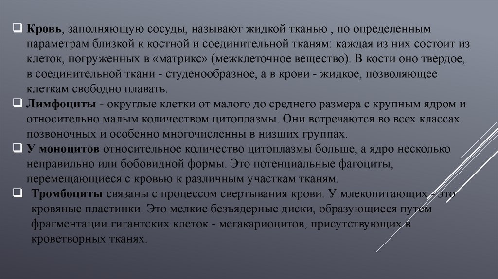 Кровь, заполняющую сосуды, называют жидкой тканью , по определеннымпараметрам близкой к костной и соединительной тканям: каждая из них состоит из